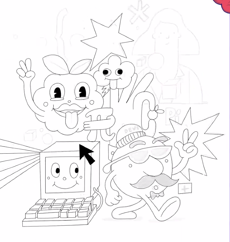 It started with a conversation. A designer and I were talking about unexpected, surreal things: Lucy in the sky with diamonds, psychedelic posters, and other ways to look at this irrational number, Pi. The designer came back with this early sketch and I knew we had something—a whole new reality where everything is irrational. We played off of the Raspberry Pi processor used by developers and a raspberry character emerged.