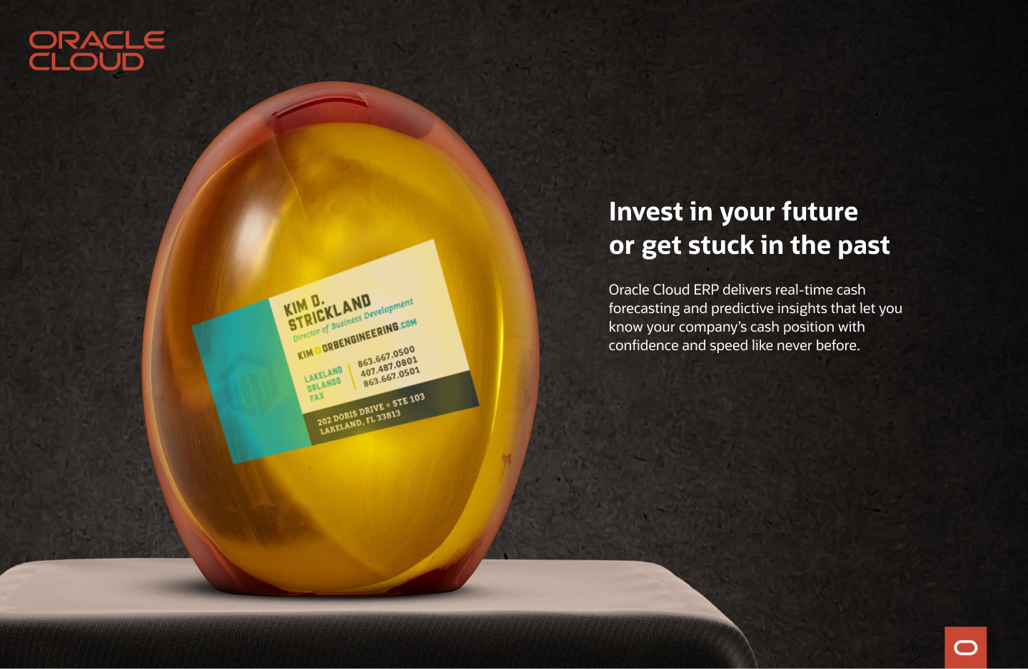 I was tasked with creating an awareness campaign for Oracle Cloud Enterprise Resource Planning (ERP) that generates urgency among enterprise C-suite executives to move their business to the cloud. The single differentiating benefit: CIOs, CFOs, and COOs should move to Oracle Cloud ERP because it’s a complete enterprise cloud designed to modernize your business.